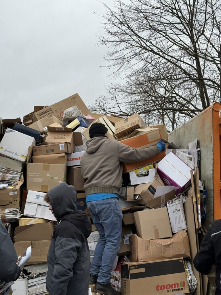 * Papier in stabilen Kartons (z. B. Obstkartons) stapeln – spart Platz und erleichtert die Abholung.